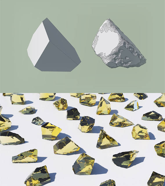 ボロノイを活用した岩作成では、フラクチャーしたジオメトリの中にあるピースだけを取り出す方法と、VDBとBooleanを利用したエッジに浸食されたディティールを追加する手法の紹介です。マテリアルはMaterial Palletにあるのをそのまま使っています。